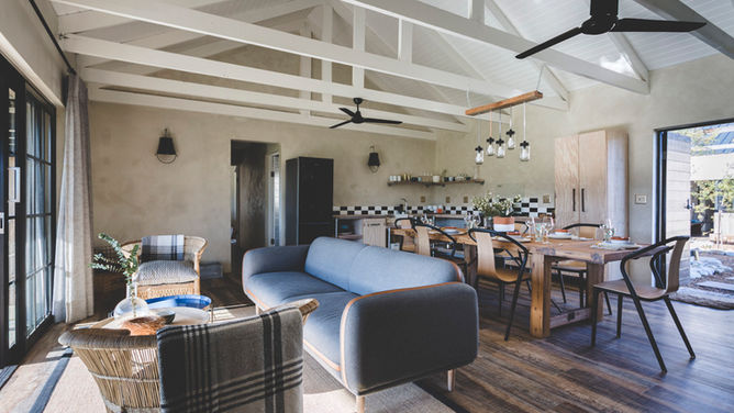 The farm cottages, with their original footprints, have been rejuvenated using reclaimed and farm-found objects, cleverly sewn together to construct a 'farm stay luxe’ self catering experience.